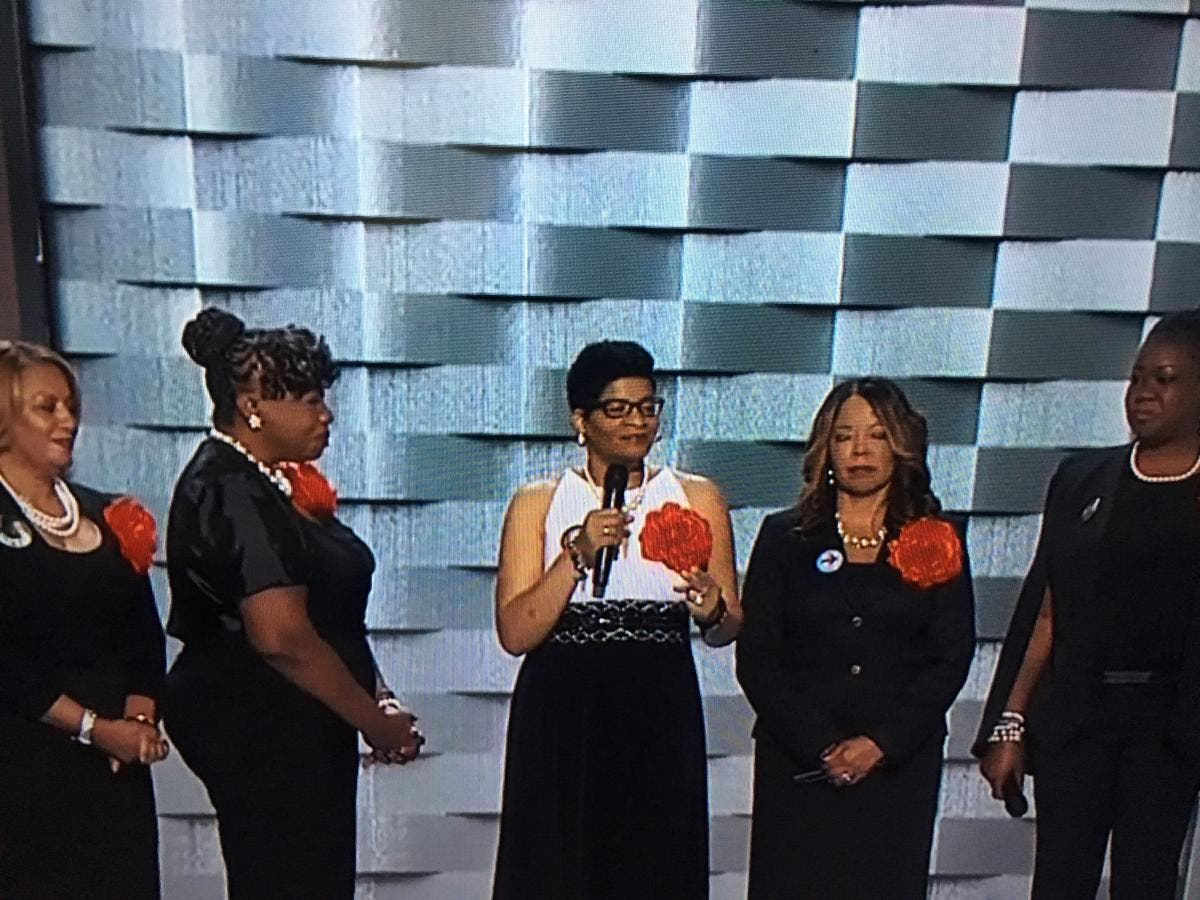 She appeared with several other women, known as the "Mothers of the Movement." Their children were gunned down, choked to death by police or otherwise killed.