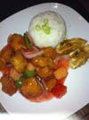 For your appetizer, you get to choose between crab in a cup, pot stickers, fried tofu or Thai egg roll. I ordered the pot stickers. They came with the main meal and were pretty good although I’m not sure what they were stuffed with.