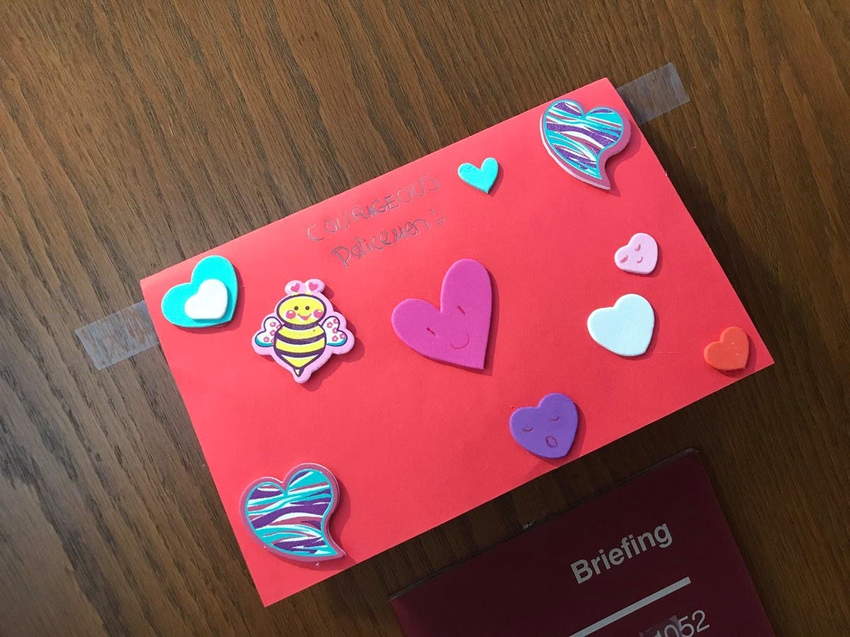 The handcrafted Valentine thanked police for their courage.
