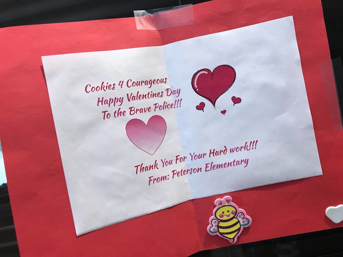 The students sent the Valentine's Day cookies as a thank you to Naperville police officers for their hard work and ongoing courage."Cookies 4 Courage," the Valentine read. "One cookie goes to a lot of courage," the card continued. "The policemen gave a lot of courage to others, so here is the courage back."