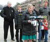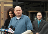 Photos: Illinois State Trooper Doug Balder, with wife Kimberli at his side, speaks at a press conference on Tuesday, the one-year anniversary of the fiery crash that nearly took his life and killed tollway worker Vincenzo Petrella./Elizabeth Sauter, widow of Trooper James Sauter, appeals for upgraded charges against the truck drivers who caused fatal crashes on I-88, I-294. Credit: Shannon Antinori