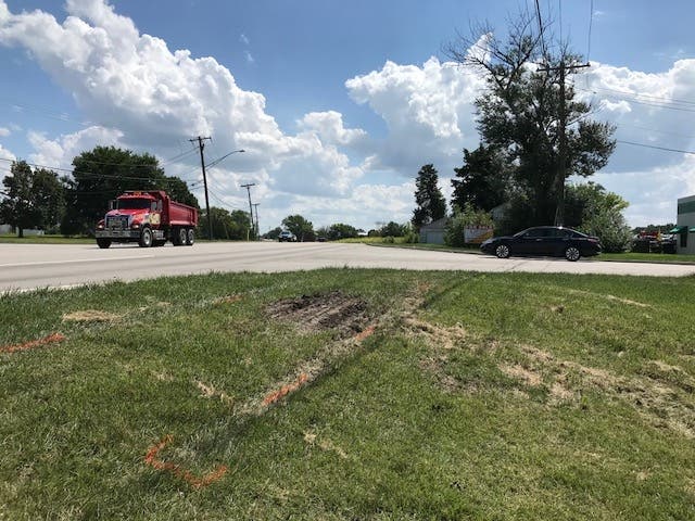 The CRV went off the road and went through the yard where there's a large for sale sign of a vacant residential property along Briggs Street.
