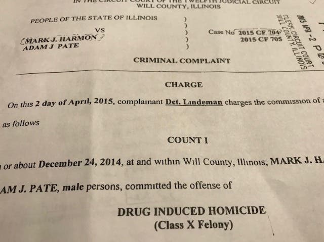 The Will County State's Attorney's Office charged both men for "knowingly and unlawfully delivering heroin, a controlled substance, to another, Jeff Tediski."