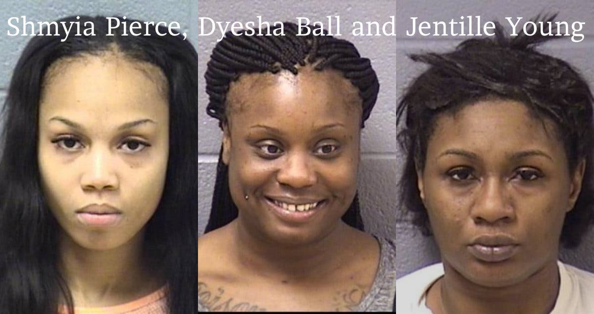 The three women—Shmyia Pierce, 22, Dyesha Ball, 28, and Jentille Young, 27—all were charged with burglary and credit card fraud.