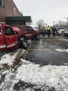 Two New Lenox Fire Protection District staff vehicles were extensively damaged on Sunday afternoon after a pickup truck swerved off of Route 30 onto district property and crashed into them.