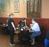 Over 45 veterans, including two World War II veterans from New Lenox, enjoyed breakfast and great fellowship at the free Veterans’ Breakfast held July 30 at the Tear Drop Café in New Lenox. State Farm agent Kevin Molloy and Teardrop Café owner Gina Buck host this free breakfast on the last Monday of every month. This month each veteran also received a free box of Girl Scout cookies from Buck, donated by a local New Lenox Girl Scout Troop. Buck and her staff all contribute to make this monthly breakfast a success.