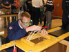 Each student that participates receives a packet of balsa wood sticks to design and make a bridge. The bridge must weigh less than 30 grams and be at least 30 centimeters long but no more than 25 centimeters high or eight centimeters wide.