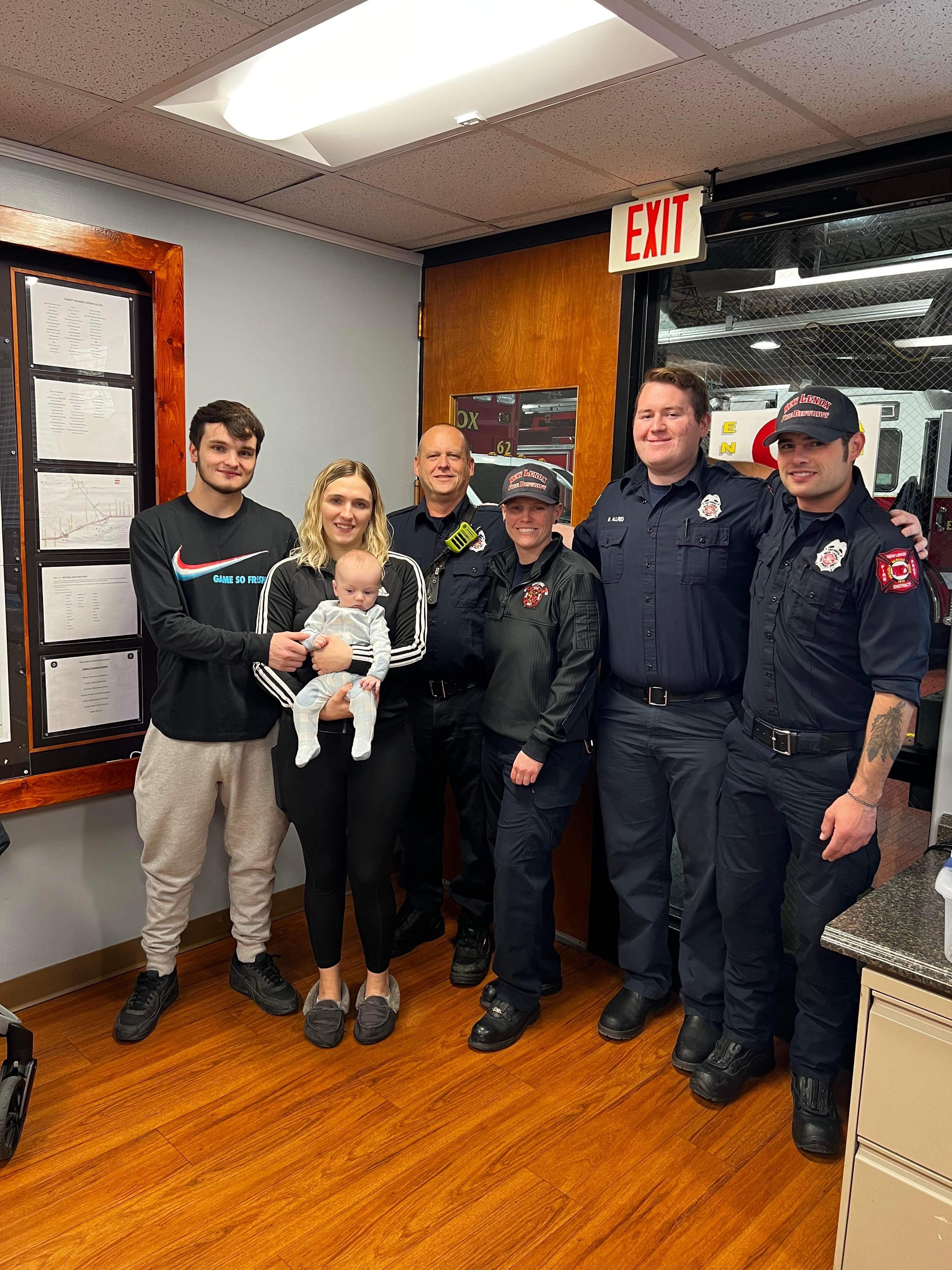 In November, the couple took their surprise bundle to meet the New Lenox paramedics—Dan, Missy, Matt and Jeff—who were there that day. They told the couple to bring Chase back some day when he's older, and they'll show him around and the ambulance and fire trucks.