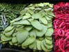 Taking the cactus leaves home, one starts to wonder how to clean them. In the end, they were only a minor pain to clean (no pun intended). Typically, preparation requires a vegetable peeler and a paring knife. Similar to scaling a fish, use your knife to scrape off the spines, and the peeler to cut out the buds. A trick I learned from one of the elderly customers was to use a new scouring pad (non-wire kitchen sponge). Make sure you wear gloves and under running water, scrub the nopales. Amazingly, the spines and most buds came off without much effort. After the leaves are clean, use your paring knife and trim off the edges and stem end. At this stage, they're ready to eat raw, cut into strips or cube, or you can cook the leaves.