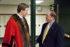 Wearing a red velvet ceremonial robe trimmed in fur, Sandys joined band members and parents at a gathering at the high school when he invited them.