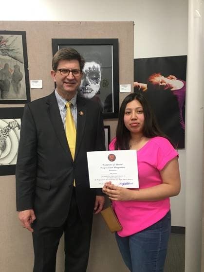 Epstein's first place entry will be displayed in the U.S. Capitol for the coming year alongside more than 430 other winning works from every congressional district in the county. She also received a pair of round-trip tickets to Washington, D.C. to attend the Congressional Art Competition award ceremony later this spring.