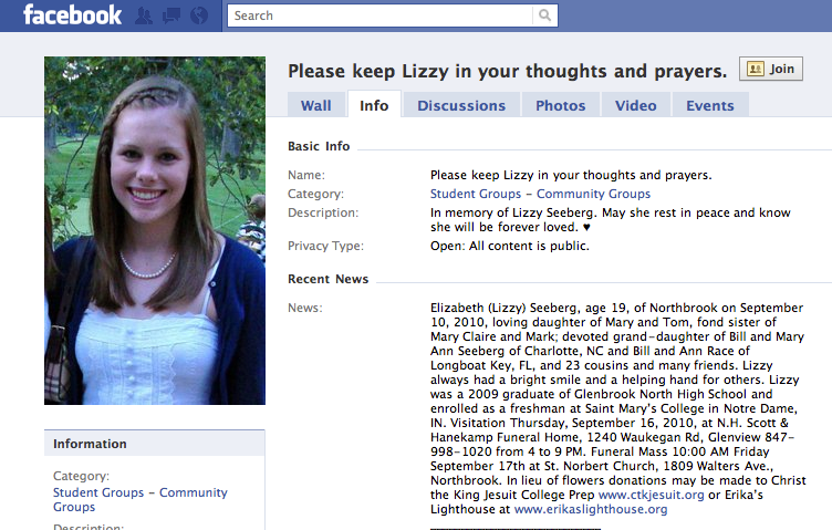 Elizabeth, “Lizzy,” Seeberg, a graduate, committed suicide in September 2010 shortly after accusing a Notre Dame football player of sexual assault. Her parents publically complained about what they considered an inadequate investigation into the assault.