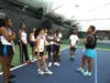 Former pro tennis player Katrina Adams (right), the youngest president in the history of the United States Tennis Association, offers instruction at a 2014 event for the Tennis Opportunity Program (TOP).