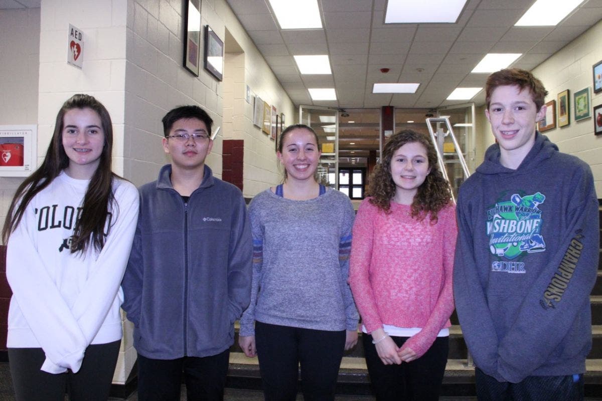 Top photo: From left, Sophia Sparacio, Changwoo Yu, Ellie Bosacoma, Lauren Segal, Matthew Carr