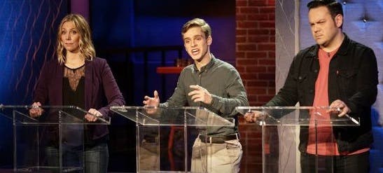 PHOTO: Ryan Goldsher (center) was voted the winner on his episode of "First Impressions With Dana Carvey." (USA Network)