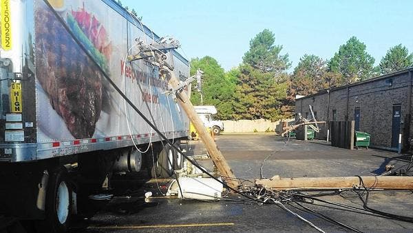 Strip Mall Loses Power After Semi Hits Pole