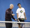 1) During a December 15th session at Five Seasons Family Sports Club in Northbrook, Tom Gullikson offers guidance to Rohan Gupta, a Glenbrook South High School senior who has committed to play tennis at Colgate University, a Division I NCAA program.