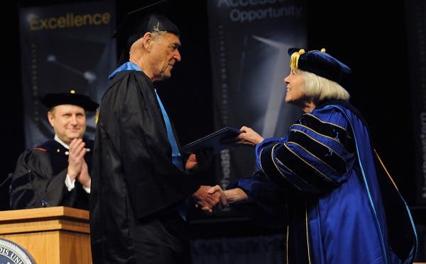 Jerry Pollard earned a bachelor's degree in history from Northeastern Illinois University on Monday. But history wasn't all he learned.
