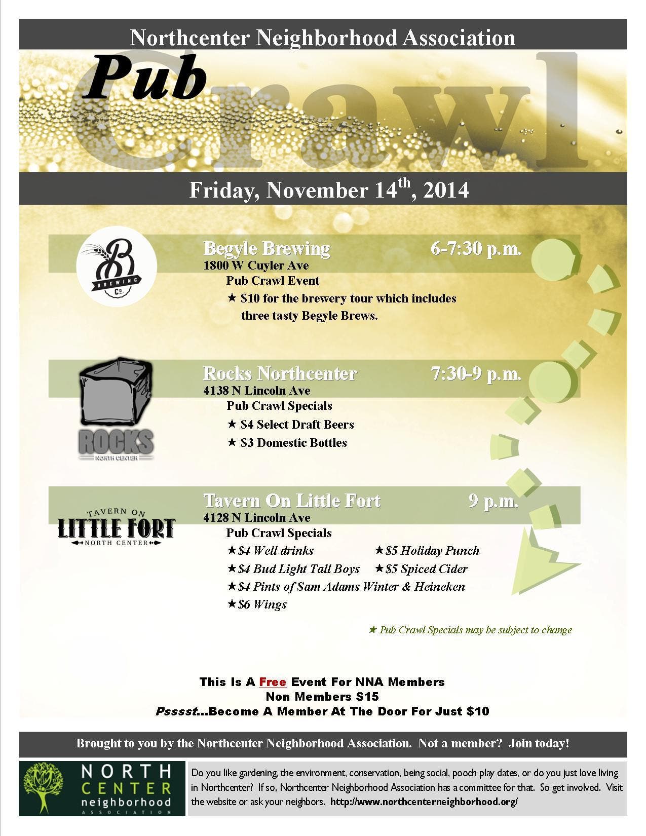 Join the NNA for our 4th Annual Pub Crawl throughout Northcenter!
