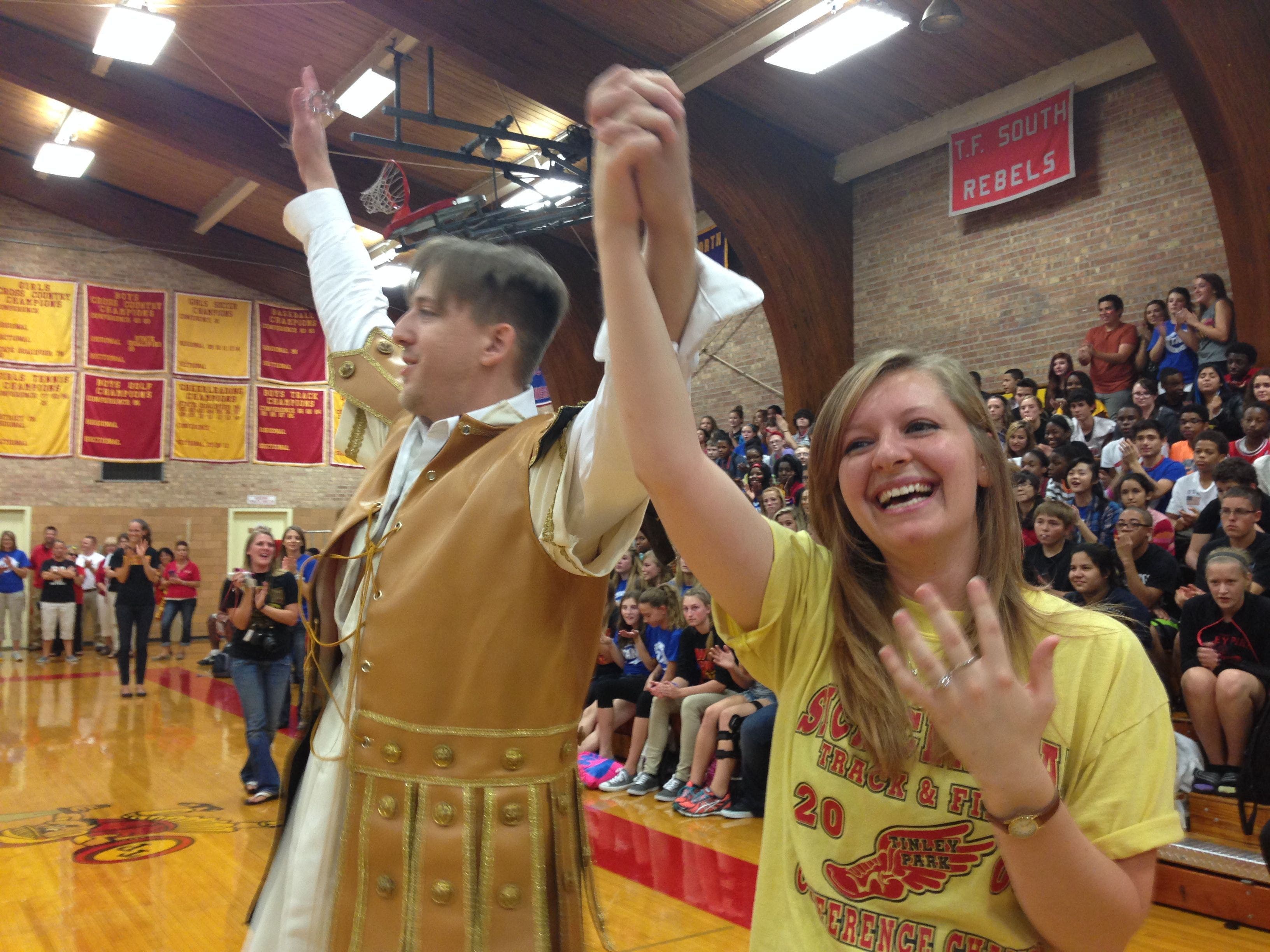 A Tinley Park Titan love story came full circle Friday, as one alumnus returned to his alma mater to pop a very important question to his high school sweetheart.