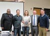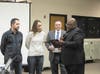 At the Board of Education meeting on December 15, 2015, Board Member Mark Johnson presented Mark and Rebekah Mensing with the Board Award of the Month. Principal Sikora highlighted the involvement of the Mensings in the music program at Oak Forest High School.