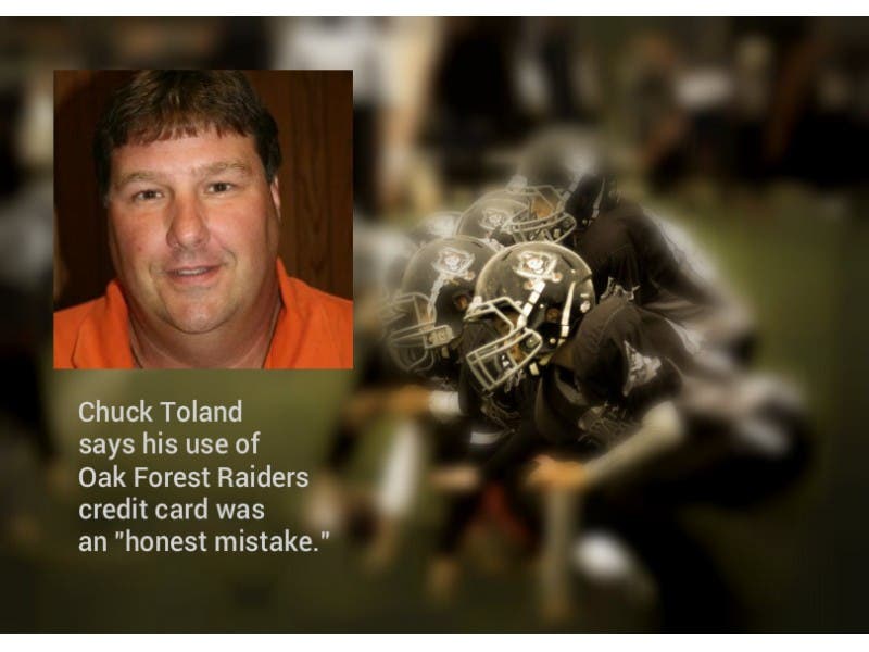 Toland says he mistakenly used the Raiders credit card on personal purchases, racking up close to $18,000 in expenses, while serving as treasurer of the youth sports organization.