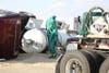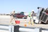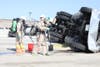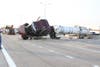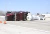 A truck carrying what is believed to be hydrochloric acid tipped over, leaking the corrosive chemical. Cleanup will extend into the evening hours, forcing drivers to re-route, Illinois State Police report.