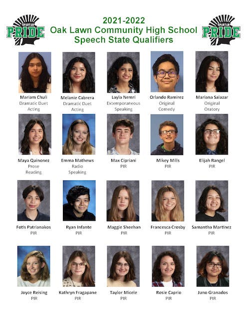 20 Oak Lawn Spartans Headed To IHSA Speech Finals This Weekend