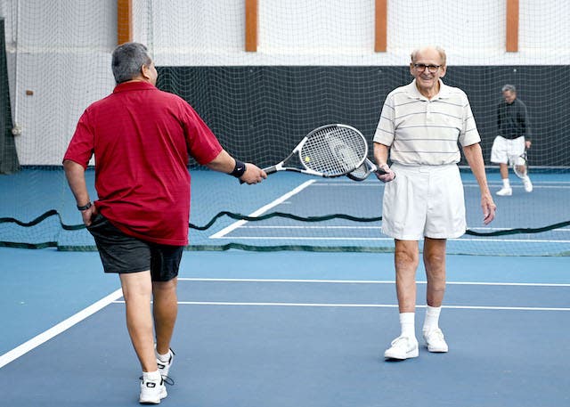 Al, in white, and a buddy finish a set at the Oak Lawn Racquet Center.