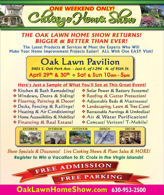One of the largest home improvement events in the region, the Oak Lawn Home Show kicks off April 29 and April 30. Free admission and parking
