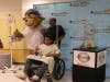 Photos by Tim Moran / Top photo: Patient Nicholas Butcher of Burbank and mom, Janet, take in a moment with Clark the Cub and the glorious trophy he brought to Oak Lawn on Tuesday.
