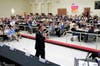 State of the District attendees experienced a unique theatre-in-the-round classroom which depicted some of differences between a traditional classroom and a “21st Century” collaborative learning environment. Teachers and students demonstrated the differences in the mock classrooms through live simulated lessons. Open discussions and sharing engaged the entire audience throughout the simulation.