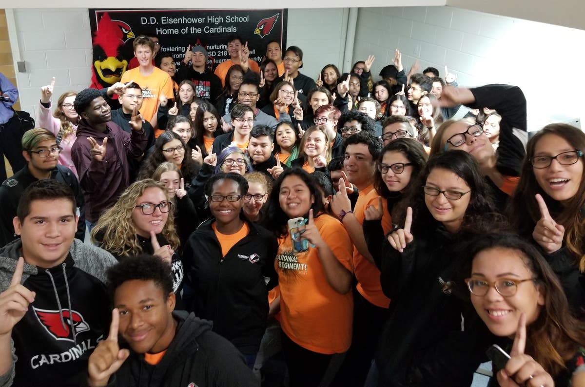That happened this week. Eisenhower High School toasted Cardinal Regiment, which won Best in Class at all eight contests this fall, with a parade that rolled through the hallways: