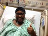 Photo I - Antonette Sloan, of Hammond, IN, gives a thumbs up after receiving a kidney transplant during Chicago’s Super Bowl blizzard.