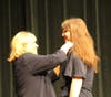 Parents proudly placed membership pins on the new members, who include Yasmen Abughoush, Hana Abuzir, Annalisa Barajas, Grace Bikulcius, Dorcas Bodunde, Danna Butnariu, Amanda Dole, Vanessa Garcia, Isabella Garza, Kailey Goldsmith, Grace Herrera and Juliana Khoury.