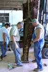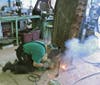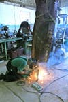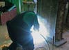Welders volunteer to help in final stages of Oak Lawn's 9/11 First Responders Monument, using beams from fallen World Trade Center.