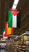 Mariano's International Food Aisles with flags hung up Palestinian Americans want their Palestine flag included next to their food aisles.