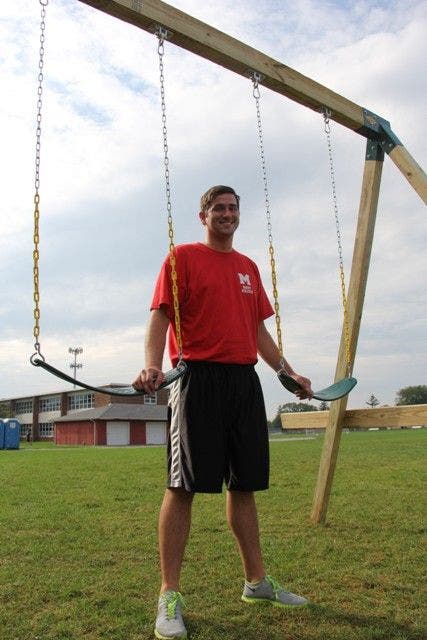 Marist’s chaplain, Deacon Andy Neu (‘78) spearheaded the building of a two-person swing on the campus just outside the school’s Red & White Stadium.