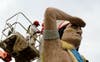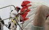 Dave Ithal paints the headdress of Big Chief, as the first day of restoration got under way Wednesday on the iconic Southwest Highway landmark.