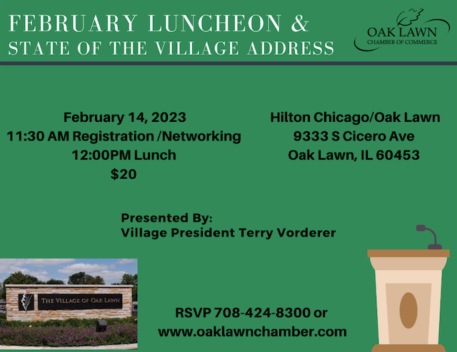 OAK LAWN, IL — Find out what condition the village is in at the Oak Lawn Chamber of Commerce monthly luncheon on Feb. 14, featuring the State of the Village Address by Mayor Terry Vorderer.