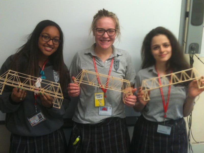 When completed, the girls were tested for efficiency as well as the amount of weight the bridge would hold before collapsing. The top three students were chosen to participate in the Chicago Regional Bridge Building Contest.