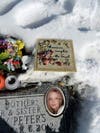 Every Sunday, Peters and her fiancé, Dave Bird, go to St. Mary’s Cemetery in Evergreen Park to visit her daughter’s grave. In the snow-filled cemetery on a recent Sunday afernoon, Peters shows mysterious trinkets left on Michele’s grave: some broken rose petals, votive candles, and a plaque, which reads, “Memories complete the soul.”