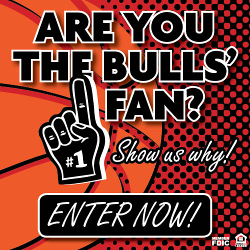Are you the Chicago Bulls #1 fan? Oak Lawn Bank & Trust will be hosting a Chicago Bulls ticket giveaway promotion starting Friday, November 1 and running through Sunday, November 24. Submit a fun photo depicting your dedication to the Chicago Bulls for a chance to win 2 tickets to the Chicago Bulls vs. Miami Heat game on Thursday, December 5.* Participants are allowed to use props such as friends, family members, or pets to showcase team spirit. Creative and original photos are encouraged.