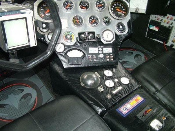 The bulletproof Batmobile has a V8 engine and weighs 5,000 pounds. The inside is tricked out with secret switches.