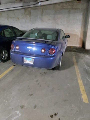 Rice drives a blue 2006 Chevy Cobalt bearing an Illinois plate AD55535. The car is a stick shift.