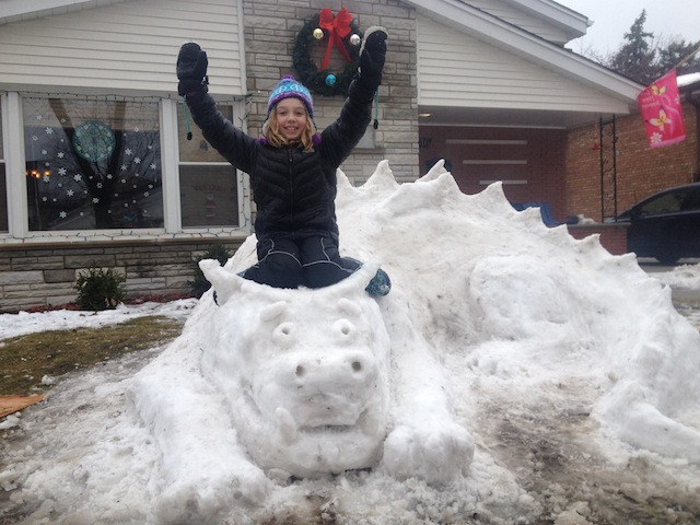 It’s not the first time Sean and his children have done something magical with snow. Seven years ago, Sean sent us pictures of his daughter, Rory, now a Richards High School sophomore, who took the last of the yucky, melting snow in 2014 and made a snow dragon.