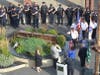 The 9/11 Tribute began at 9:11am with the Johnson-Phelps VFW Post 5220 Posting the Colors followed by Mayor Dr. Sandra Bury leading the crowd in the Pledge of Allegiance. After the welcome from Mayor Bury, the Oak Lawn Community High School Choir performed the National Anthem. A reflection was delivered by Village Clerk Jane Quinlan followed by remarks from Oak Lawn Rotary President Dr. Michael Riordan, Post Commander Rick Luemen and Retired Oak Lawn Police Chief Bill Villanova. Retired Police Chief Villanova talked about how this steel from the World Trade Center got to Oak Lawn in 2009. Towards the end of the Patriot Day Memorial, there was a beautiful somber performance from the Oak Lawn Community High School Choir singing "Set Me As a Seal". Although not listed on the program, Oak Lawn Police and Fire Dept representatives revealed the last sculptural elements which completes the 9/11 Memorial. The 9/11 Remembrance was concluded by the Retirement of Colors.