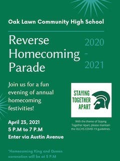 OAK LAWN, IL — With the pandemic putting everything topsy-turvy, Oak Lawn Community High School is celebrating homecoming in the spring, with a reverse parade and a big game against Argo High School.