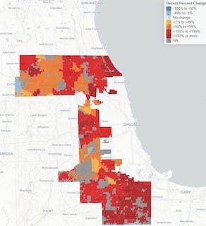 In Oak Lawn, confirmed cases have risen by 133 percent over the past 14 days, according to new data. Last week, 336 cases were reported, making for a weekly case rate of 576 cases per 100,000 people. The village has seen a total of 9,012 confirmed cases, making for a total confirmed case rate of 12,510 per 100,000 people.