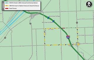 On 87th Street under I-294, three nights of full roadway closures will be scheduled during the week of July 19. The closures will begin at 9 p.m. each night, with the roadway reopening by 5 a.m. the following morning. During the roadway closures, a posted detour will route traffic via Cork Avenue, 95th Street and Harlem Avenue.